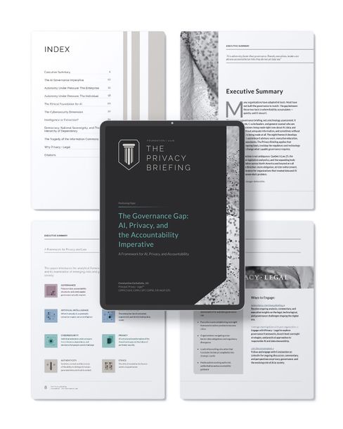 The Privacy Briefing is a dedicated resource for understanding how evolving data laws and AI practices affect your organization. This report provides a high level overview of the pressures, risks, and obligations leaders should be aware of, and how to navigate these challenges with certainty. Ongoing Privacy Briefing issues offer deeper, subject specific guidance as regulations and practices continue to evolve.